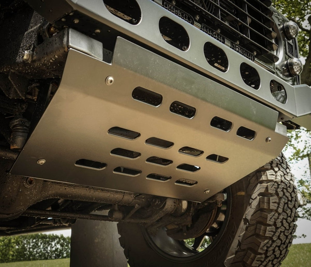 Our Lightweight Defender Steering guard is made from 6mm Aluminium. A CNC Machined 5mm radius has been detailed into the design slots & laser-cut edges are fully dressed to a nice radius throughout the entire item, front & back. At just under half the weight of a conventional steel guard, our lightweight Defender steering guard is a great weight saving option without any compromise on quality.